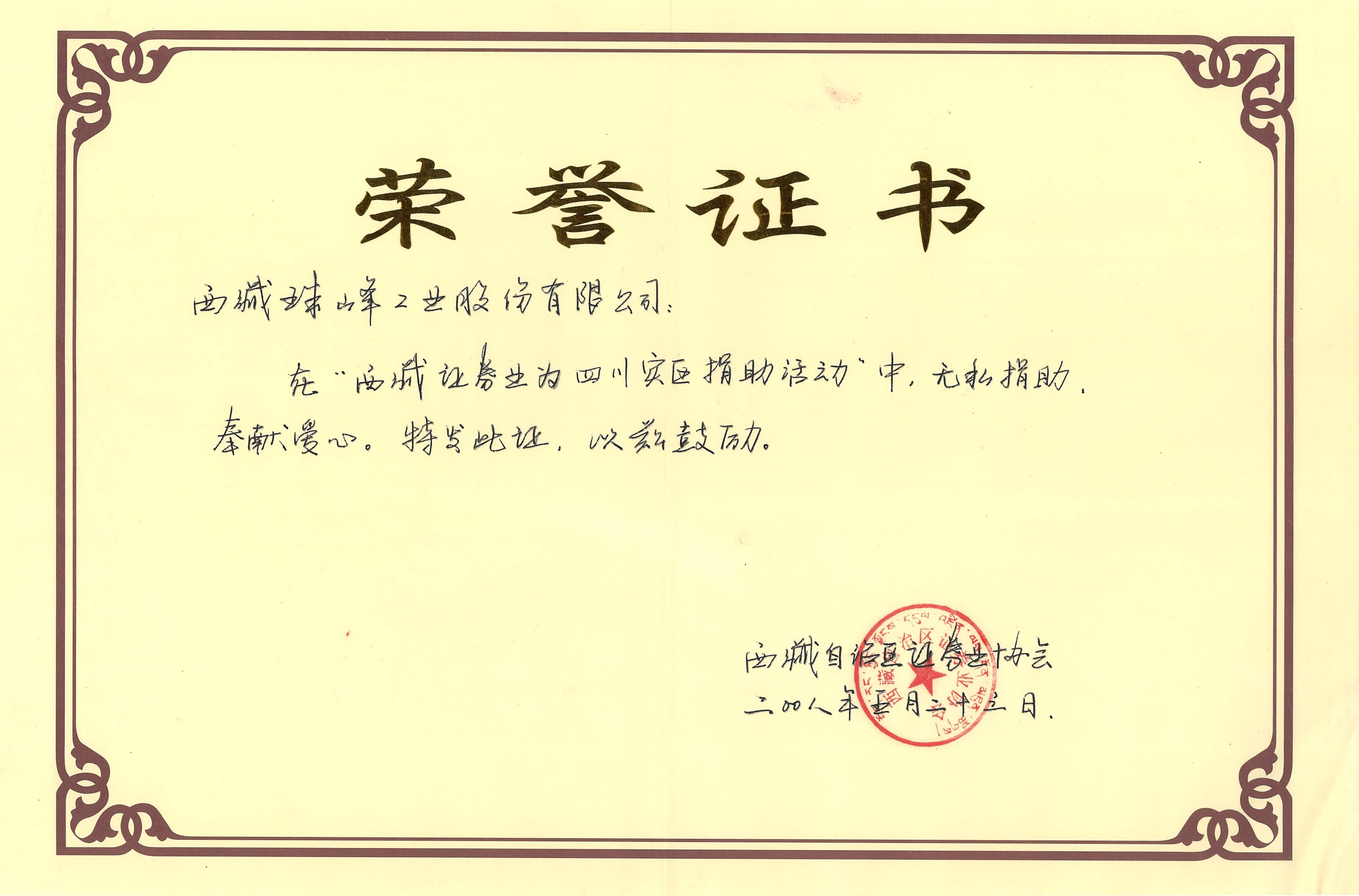 西藏自治區(qū)授予“愛心企業(yè)”稱號